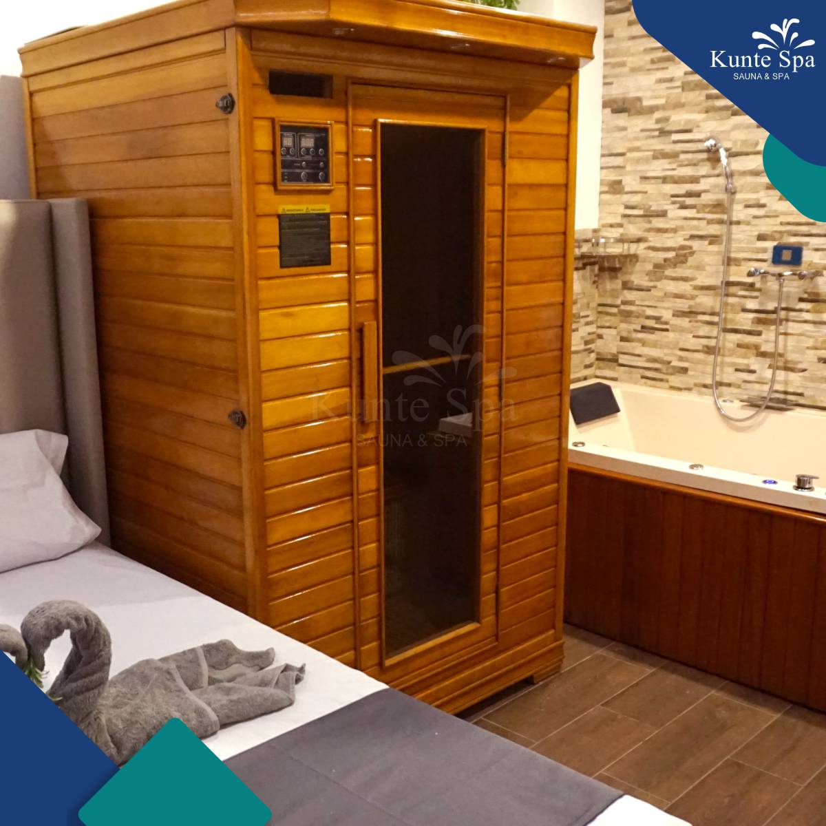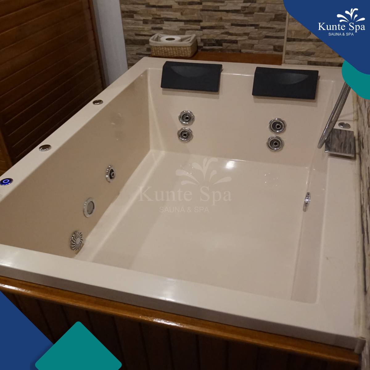 Nuestro jacuzzi con hidromasaje para 2 personas está diseñado para que se olviden del estrés, se conecten entre ustedes y disfruten un momento de calma, confort y bienestar en un ambiente íntimo y relajante en Kunte Spa.