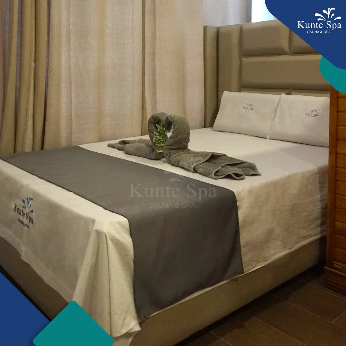 Disfruten nuestra área de descanso con cama de 2 plazas, un espacio cómodo y acogedor pensado para prolongar la relajación y compartir un momento de total bienestar en Kunte Spa.