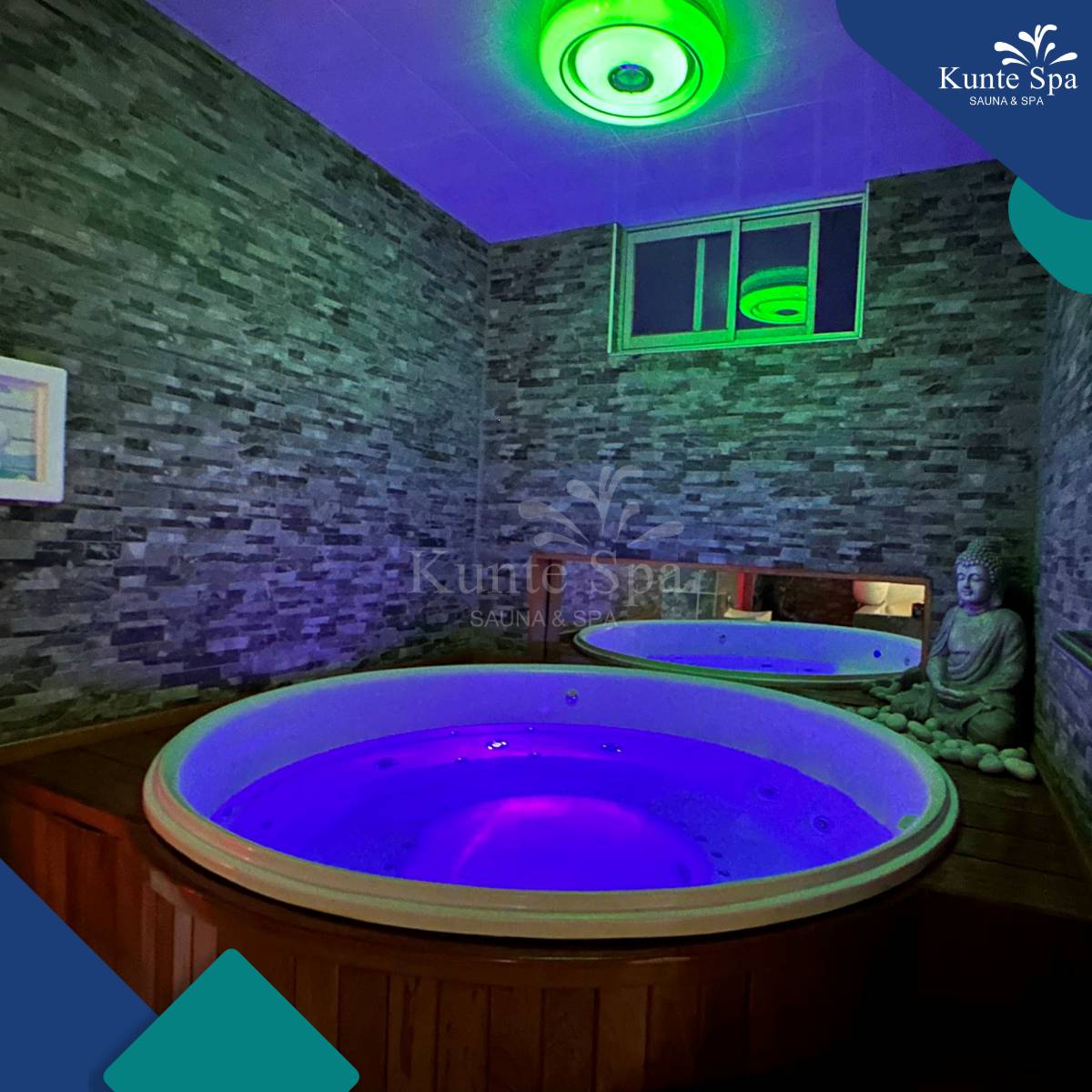 Nuestro jacuzzi con hidromasaje para 2 personas está diseñado para que se olviden del estrés, se conecten entre ustedes y disfruten un momento de calma, confort y bienestar en un ambiente íntimo y relajante en Kunte Spa.